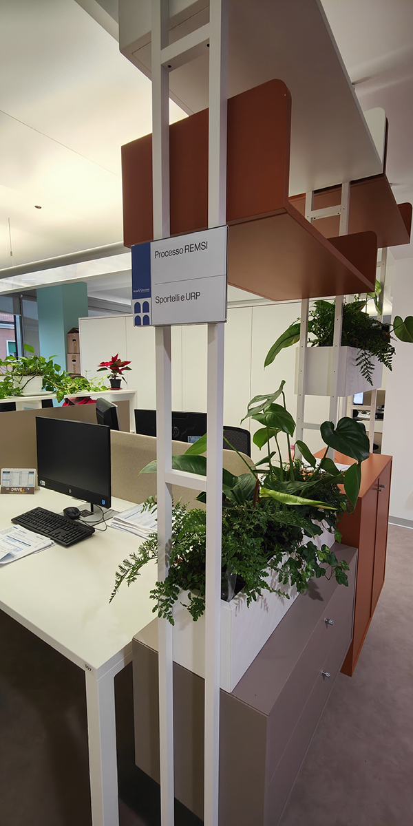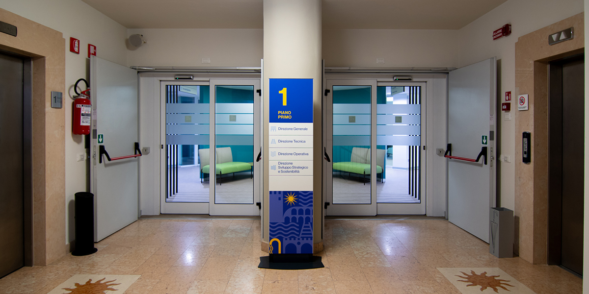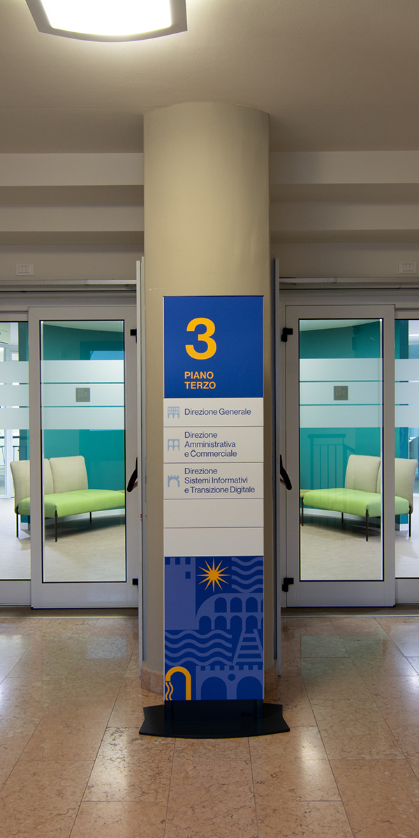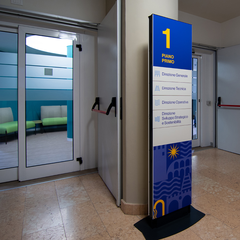 Il progetto ha previsto l’utilizzo del sistema Cartesio per l’orientamento e lo smistamento all’interno della nuova sede, accompagnando in modo chiaro e intuitivo utenti e dipendenti tra uffici e aree comuni, migliorando la fruizione degli spazi e l’organizzazione dei flussi.